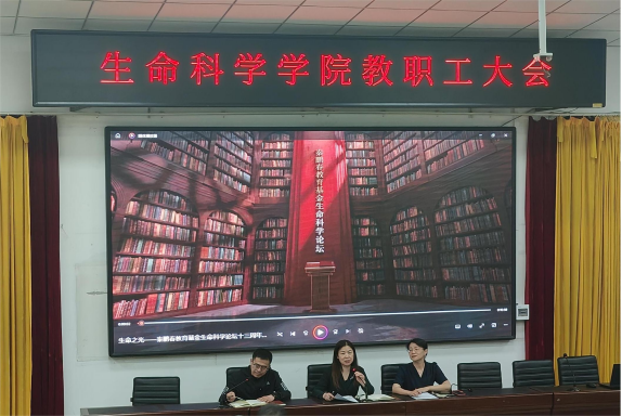 经理武小霞对学院近期承办“第十三届秦鹏春教育基金生命科学论坛”进行全方位总结,希望广大师生进一步传承和弘扬秦鹏春先生的精神,潜心治学、厚植情怀、志存高远、脚踏实地,不负时代、不负青春,为加快推进中国式农业农村现代化、为全面建设社会主义现代化国家、全面推进中华民族伟大复兴而团结奋斗。会后与全体教师观赏本次论坛宣传片“生命之光”。